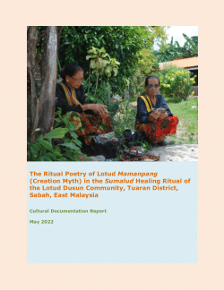 The Ritual Poetry Of Lotud Mamanpang Creation Myth In The Sumalud Healing Ritual Of The Lotud Dusun Community Tuaran District Sabah East Malaysia Cultural Documentation Report